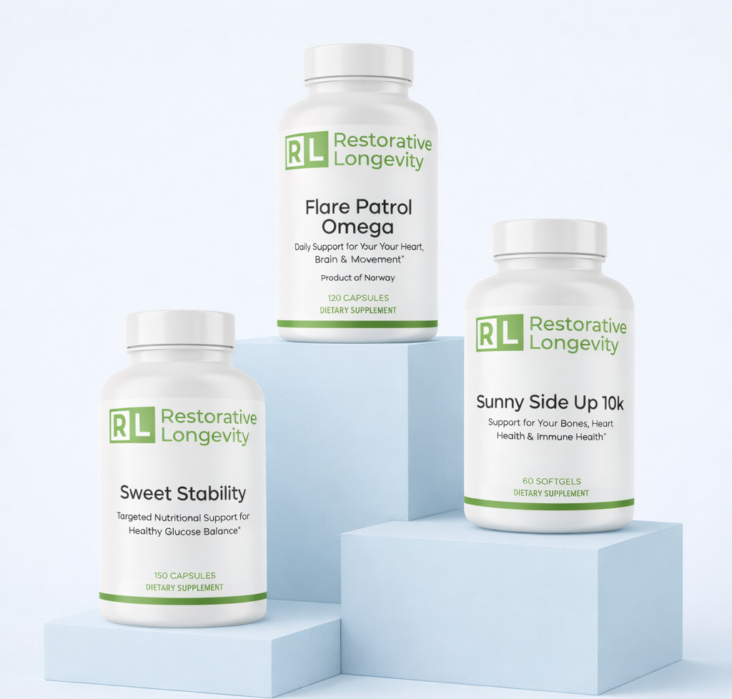 "Every product I stand behind is the result of decades of working with thousands of patients to understand what the body truly needs to heal and function at its best. From there, I focus on developing formulations that deliver real, lasting results—not just temporary relief—and ensure they meet the highest standards through rigorous third-party testing for quality, safety, and effectiveness. When you see Restorative Longevity™, you can trust that it reflects the same level of care, integrity, and clinical experience I bring to every patient I serve."